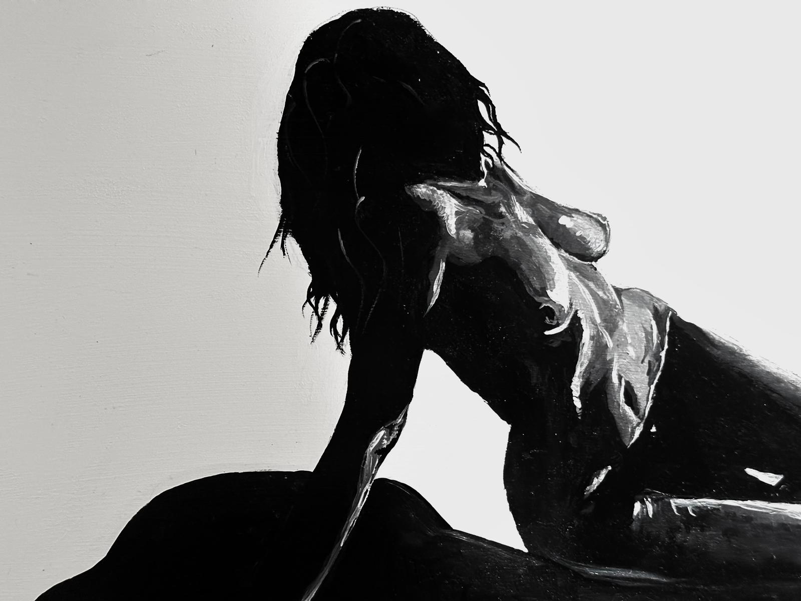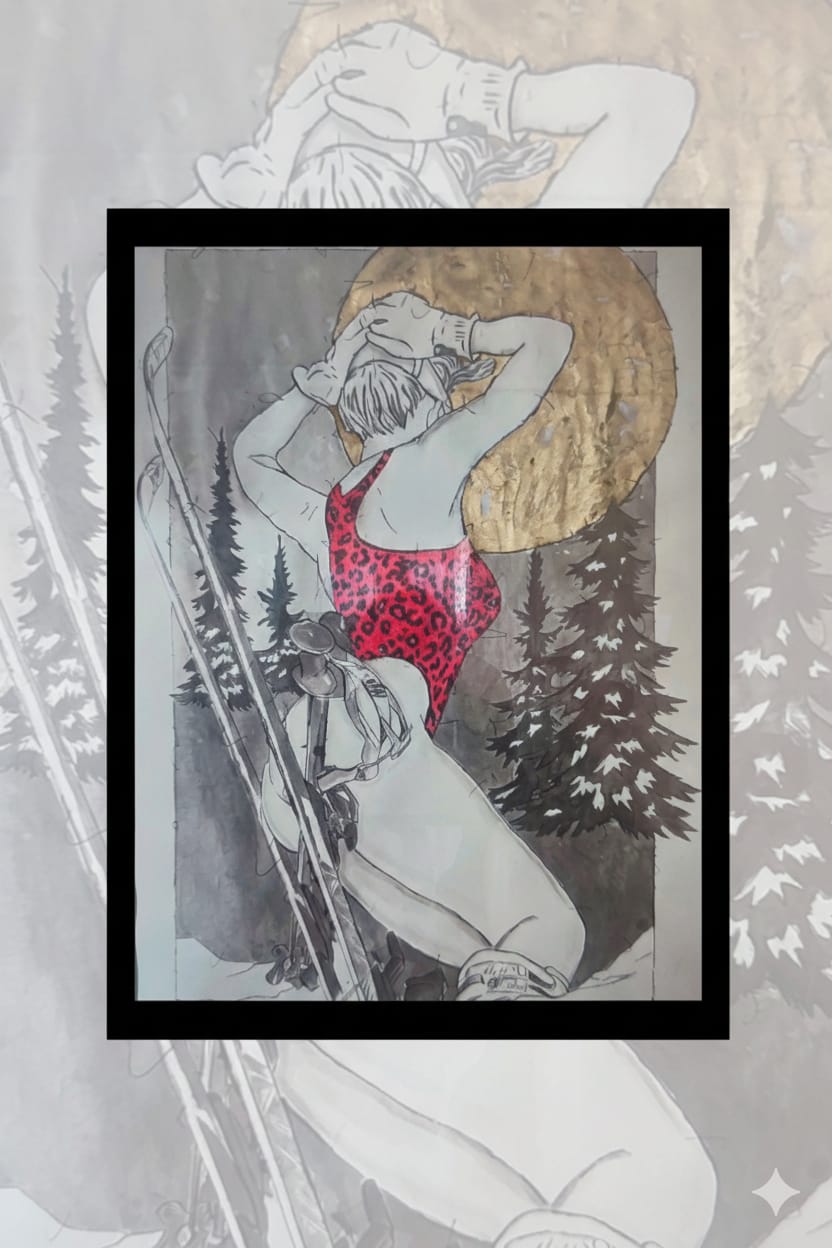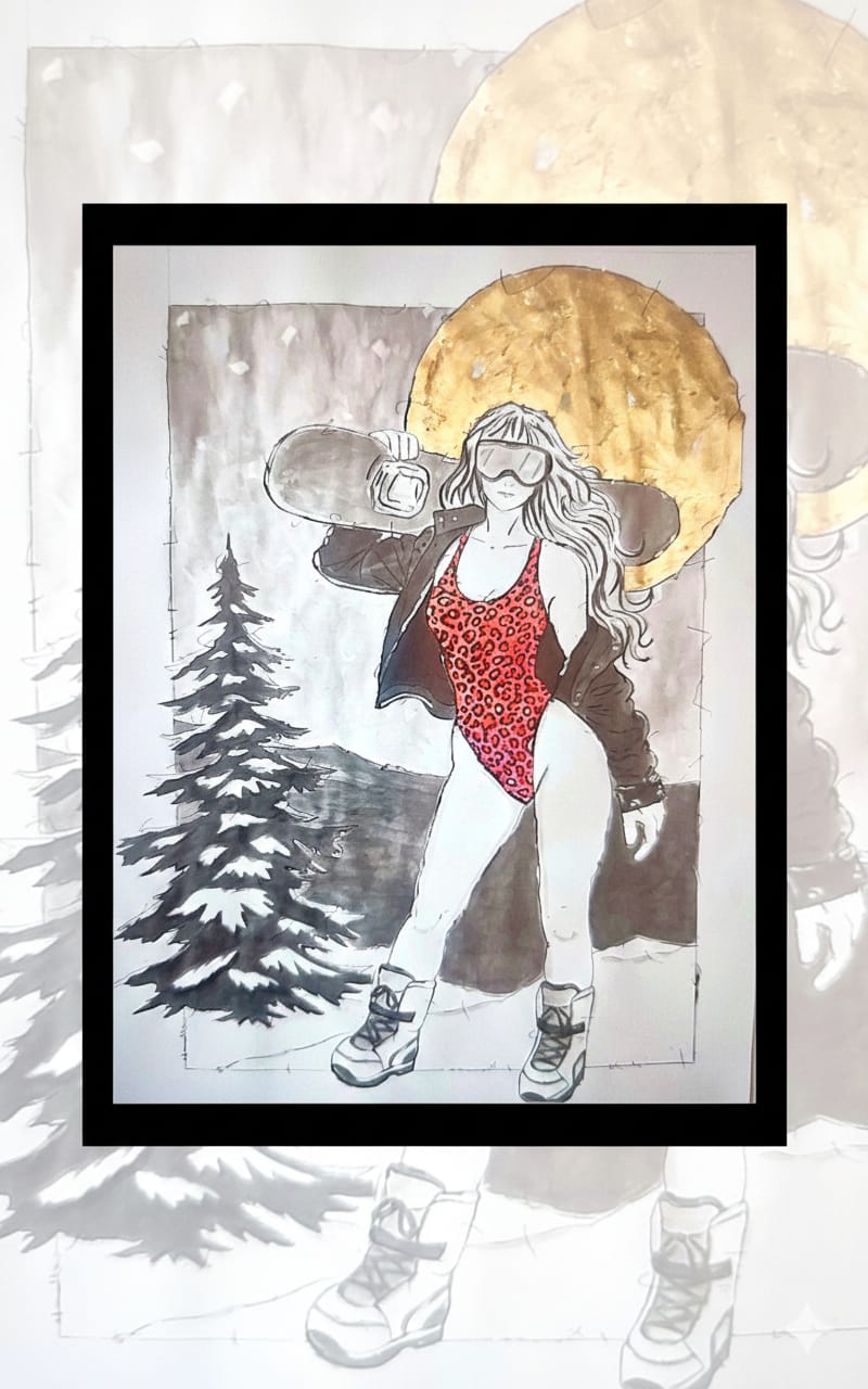 Sie schafft kraftvolle Mixed-Media-Arbeiten, in denen starke Frauen im Mittelpunkt stehen. Hauptmaterial ist Tusche, kombiniert mit Neonfarben, Blattgold und weiteren Mixed-Media-Elementen. Ihre Werke strahlen Präsenz und Energie aus und zeigen zugleich das Leiden und die Herausforderungen in der Gesellschaft. Sie feiert, was Frauen sein dürfen – echt, stark und ungeschönt – und macht sichtbar, wie sie sich in ihrer ganzen Vielfalt entfalten.